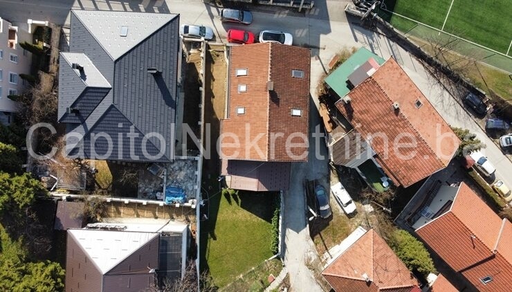 Prodajemo urednu, kvalitetnu i nedavno većim dijelom renoviranu kuću uknjižene površine 174m2 , stvarne površine cca 250m2, izgrađene na parceli ukupne površine 410m2. Kuća je planski građena, tako da se na prizemnoj etaži koja je nedavno renovirana, nalazi garaža za jedan automobil, te stambeni dio koji se sastoji od prostranog dnevnog boravka, dvije spavaće sobe, komforne trpezarije iz koje se pristupa velikoj terasi sa uređenom baštom, kuhinje, kupatila i vešeraja. Na drugoj etaži koja nije renovirana, nalazi se dnevni borava, dvije spavaće sobe i kupatilo. Na trećoj etaži koja je renovirana , nalazi se dnevni boravak sa kuhinjom, dvije spavaće sobe i taolet. Sa svake etaže pruža se pogled na naselje i pomoćni stadion Grbavica.